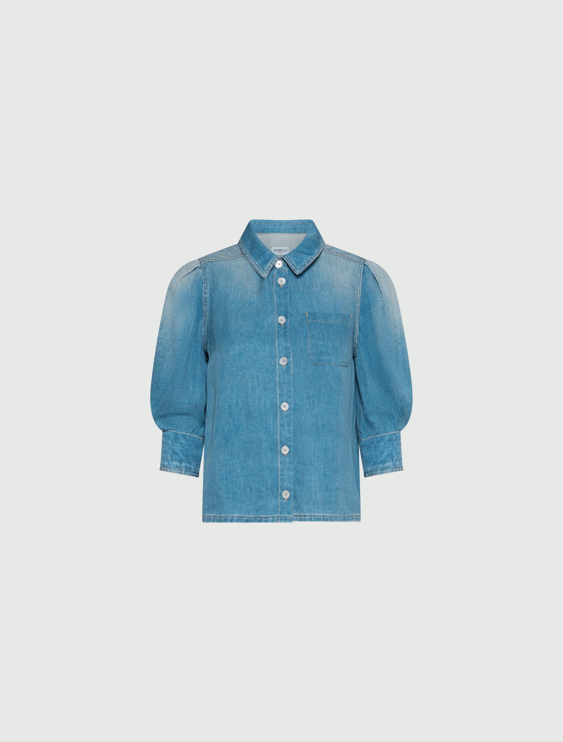 - 3/4 sleeves with puff detail at the shoulders and cuffs